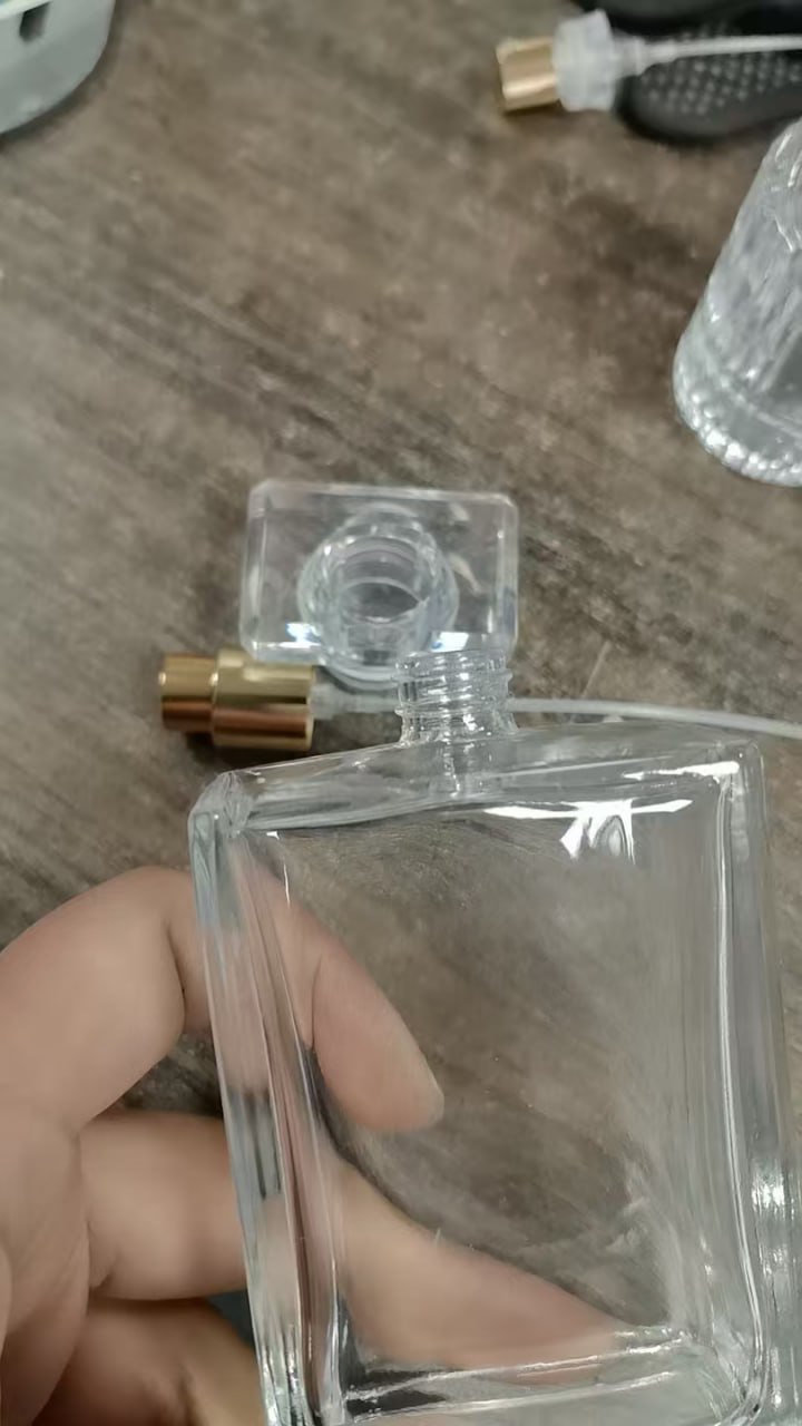 Bộ vỏ chai nước hoa cùng với nắp loại nắp thông dụng được sử dụng đựng các dạng dung dịch, dạng nước…